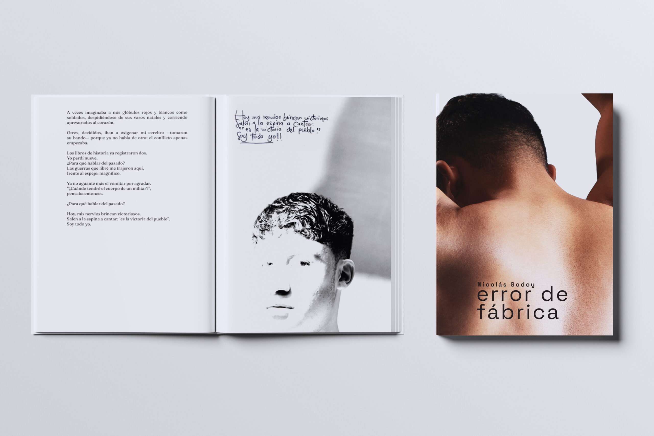 Este es el segundo libro y el primer libro completamente lleno de poesía de Nicolás Godoy. En “Error de fábrica” se explora, a partir de la intimidad y visceralidad: el cuerpo, la identidad y el peso de la herencia. Con un lenguaje crudo y profundamente poético, Nicolás Godoy convierte lo imperfecto en materia luminosa para mostrarnos cómo las cicatrices, los huesos y memoria se transforman en símbolos de resistencia y autodescubrimiento.